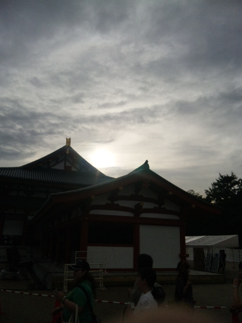 まだまだ明るい薬師寺さんで登場を待ちます。