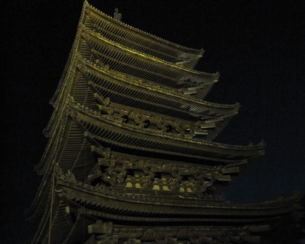 やっと到着、五重塔のライトアップ。