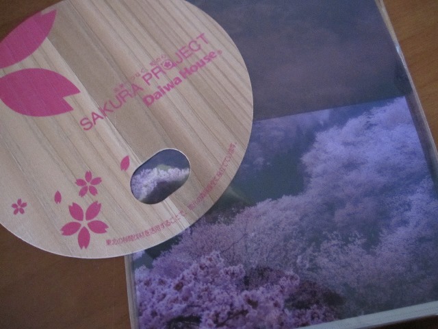 これは募金箱にちゃりんしたらいただいた桜の木で作られたうちわと吉野桜のクリアフォルダ。