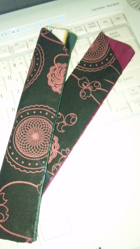 ここはご朱印帳がかわいくってね。このピンクと黒の桜模様のなんですけど、友人が購入するっていうので一緒におくってもらって使っています。