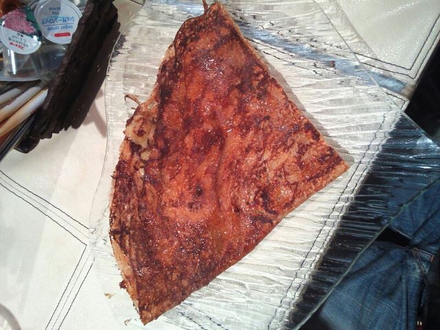 外はカリっとしてて、表面には甘い蜜が浸みてます。中は焼いたバナナとチョコが溶けてて、マシュマロが仕組んでありました。