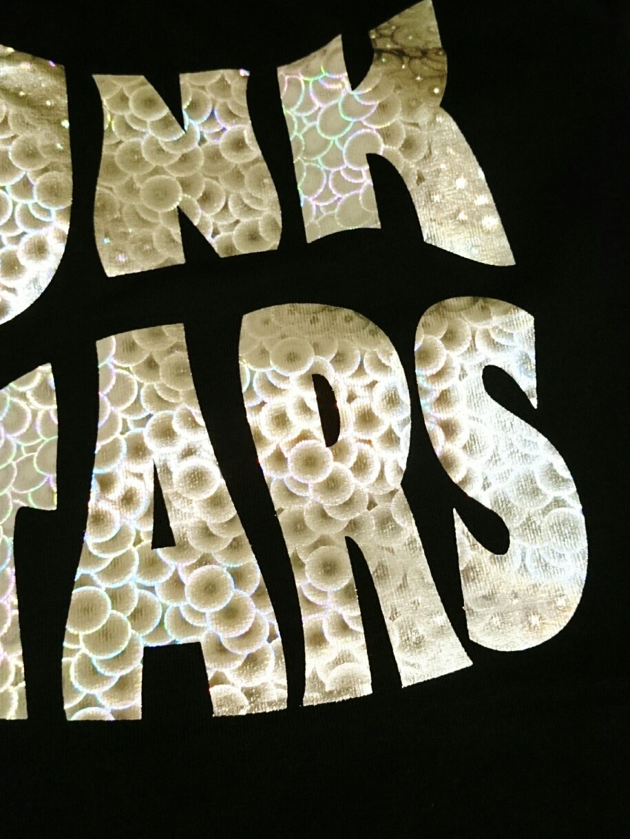 黒地に今回はシルバーっぽい字です。